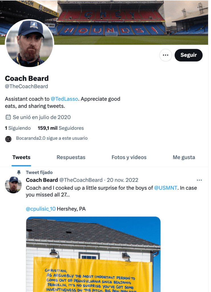 Por ello, una vez que la serie en concreto ya era un hecho, meses antes en 2019 se creó en la red Twitter el perfil oficial del entrenador Ted Lasso. Y con él, paulatinamente se fueron sumando los perfiles de los principales personajes de la serie, incluyendo el del equipo de fútbol.