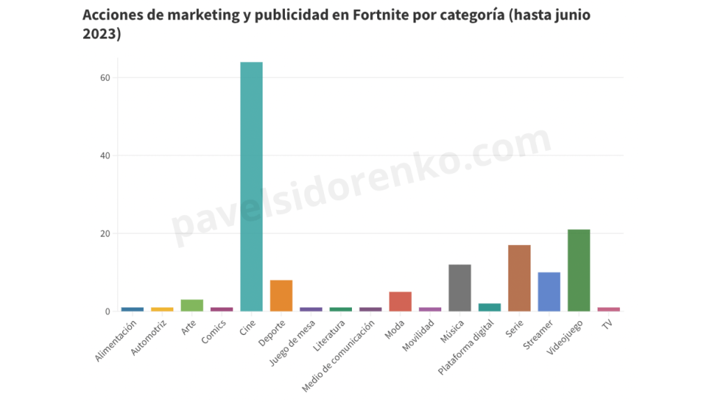 Gráfico 1. Acciones de marketing y publicidad en Fortnite por categoría (hasta junio 2023)